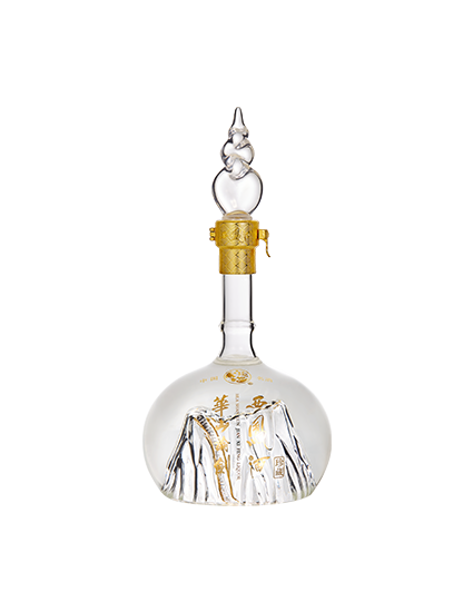 盒體三面通透,紅、金兩色皆相宜,兩度榮獲世界之星包裝設計獎的經典瓶型,圓潤挺拔,散發儒雅氣質,修長的竹節狀瓶頸寓意正直坦蕩,節節高升,雄奇渾厚的華山矗立瓶中,飽含著財富、愛情、成功、孝道之美好意韻,晶瑩剔透,有如精美的藝術擺件。