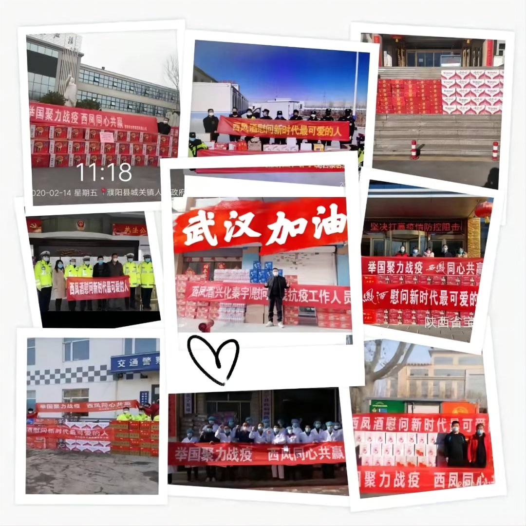 為了支持抗擊疫情,向奮戰在一線的醫生、護士、解放軍戰士等新時代“最可愛的人”致敬,西鳳公司發動“致敬新時代最可愛的人”公益捐贈活動,廣東、東北、河南、甘寧、川鄂、湘贛、新疆、山東等地分公司及經銷商積極響應,先后為全國300多個城市的醫生護士、公安交警、解放軍戰士、學生教師、環衛工人等送去了抗疫物資及生活必需品。