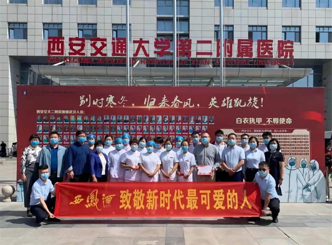 在疫情取得階段性勝利的同時,西鳳公司還向寶雞市援鄂歸來的醫護人員進行慰問捐贈,并表示:“不論是出于百年名酒的企業擔當,還是作為公民個人的社會責任,都應該為他們構筑一個堅固可靠的‘大后方’,讓這些白衣天使沒有后顧之憂?!?