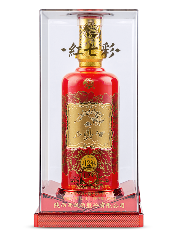 紅七彩12年,高級質感透明亞克力材質外盒,流光金與復古紅的撞色設計,雍容、華美不失格調。