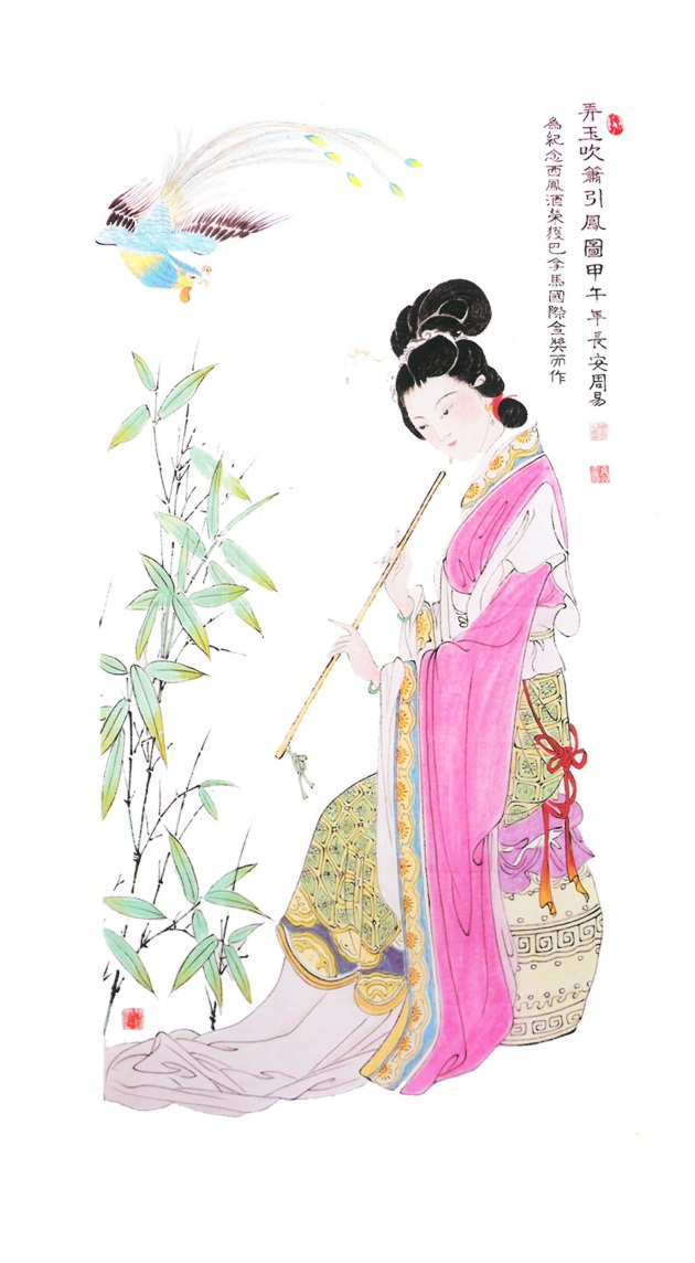 弄玉吹簫引鳳圖